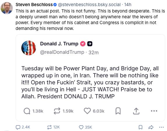 This kind of false equivalence completely undermines the bigger picture. It's not only Congress and the cabinet that are afraid to confront the truth--the man in charge is stark raving mad.