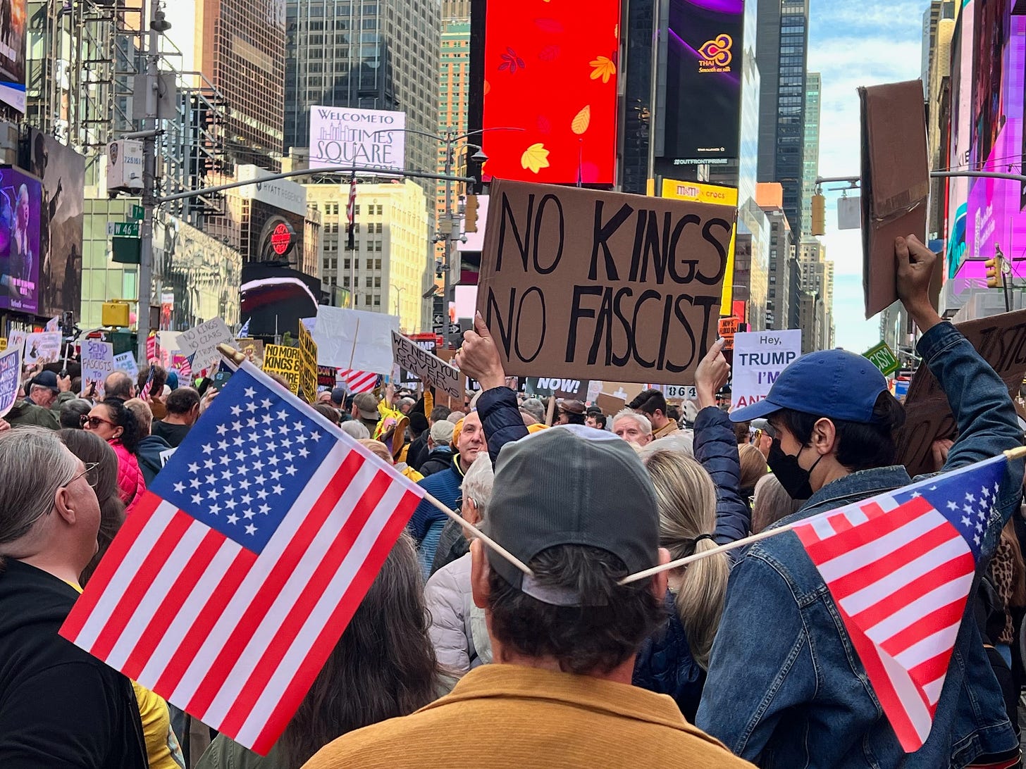 I'll be there in all my 76 year old glory. We Boomers have been on the streets since the Vietnam War. I have a sign from the first No Kings march that I am using again, will be wearing a baseball hat celebrating the ACLU and all of its successes, and a bright yellow No Kings sweatshirt sadly under my winter jacket. Hope to see you all there!